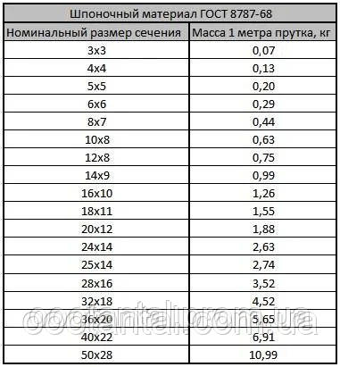 Шпонковий матеріал — калібрована зміцнена нахолодна (нагартована) сталь 45 по ГОСТ 8787-68.